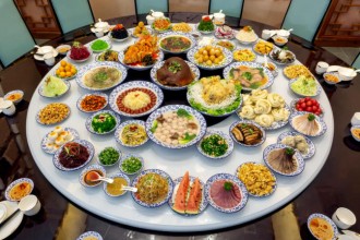 陕西宴席“十三花”以凉菜组合为核心,搭配热菜“九品”构成完整宴席体系,尤以大荔县“九品十三花”为典型代表。此宴席注重荤素搭配、五味调和,每道菜承载地方故事(如带把肘子源于明厨···